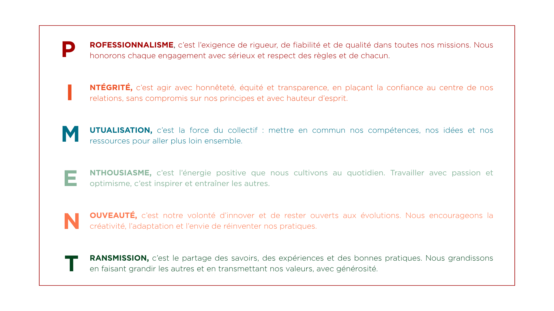 Nous plaçons l’humain, la diversité et l’éthique au cœur de nos priorités, convaincus qu’une entreprise responsable agit autant pour la réussite de ses collaborateurs que pour le bien commun.